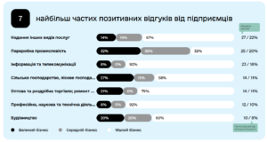 У секторах інформації та телекомунікацій, а також у сфері послуг, частка негативних відгуків є суттєво нижчою.