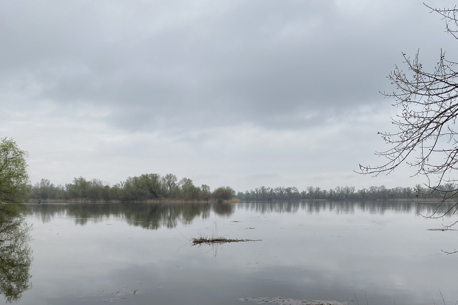На поверхні легке мерехтіння — як стрічка, що змінює колір. Птахи повертаються, качки виходять з гущавин, зацікавлені в кожній хвилі. Ранковий туман вкриває водосховище, і видимість зникає до найдальших заводських труб — здається, ніби місто і річка домовилися про паузу, щоб відновити сили. Люди виходять на набережну в легких куртках: хтось із собакою, хтось з термосом — всі ці рухи роблять берег живим.