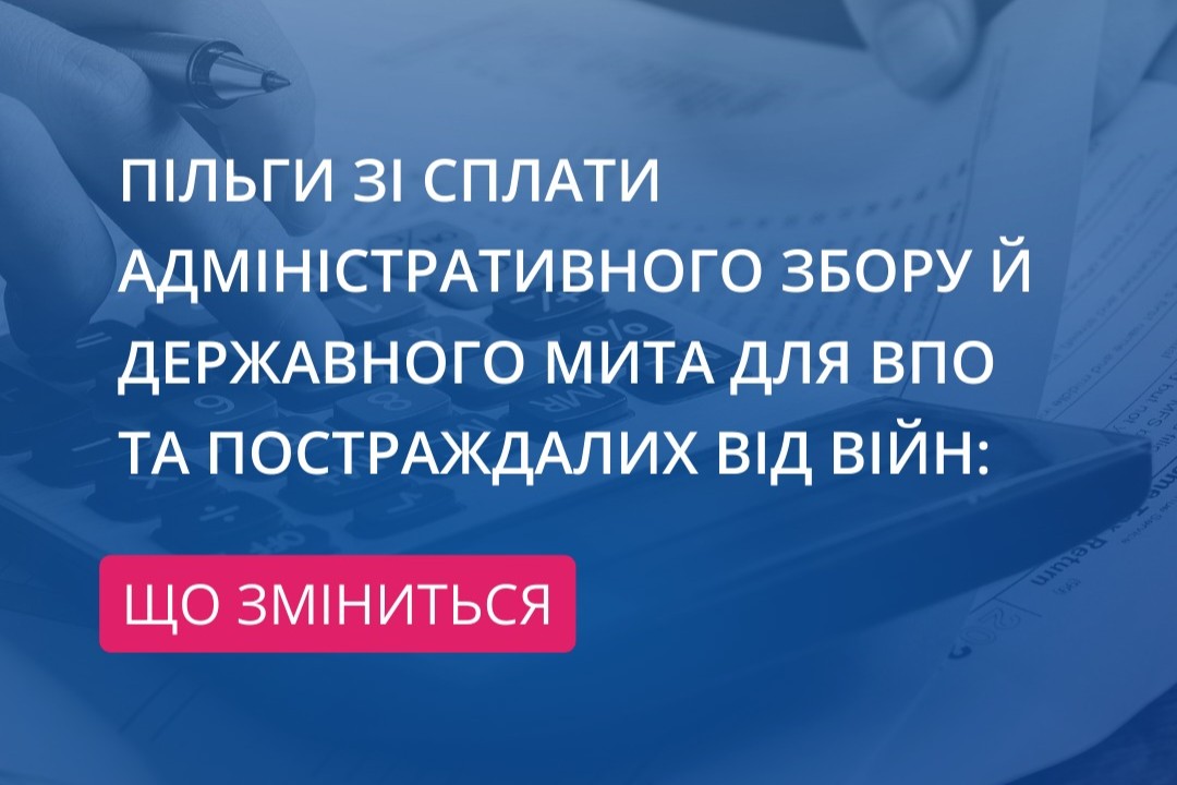 Згідно з документом, звільнення від сплати адміністративних зборів та державного мита надається: